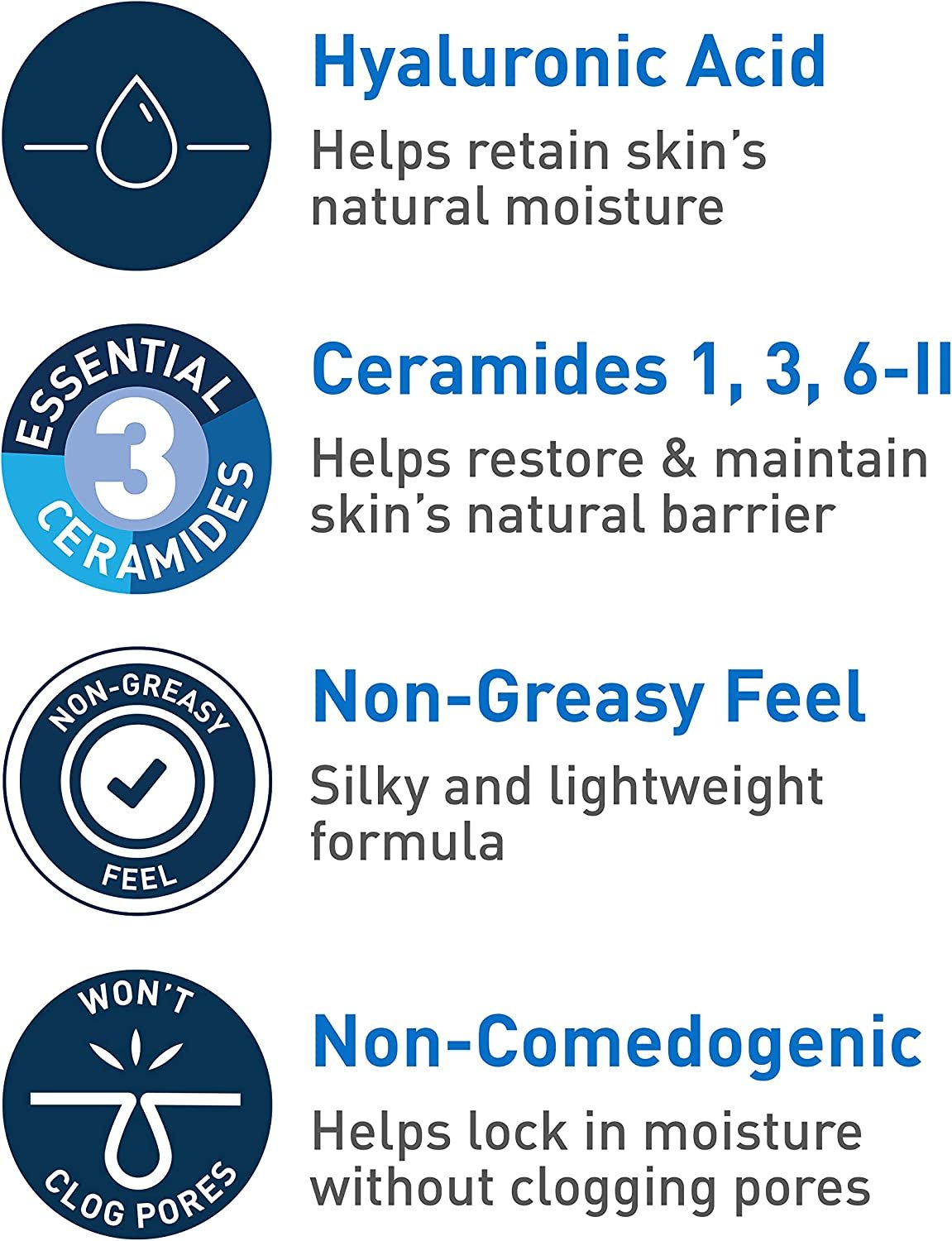 - [ 3 ESSENTIAL CERAMIDES ] A deficiency in Ceramides can be associated with dry skin that is itchy and flakey. All CeraVe products are formulated with three essential ceramides (1, 3, 6-II) to help restore and maintain the skin’s natural barrier.